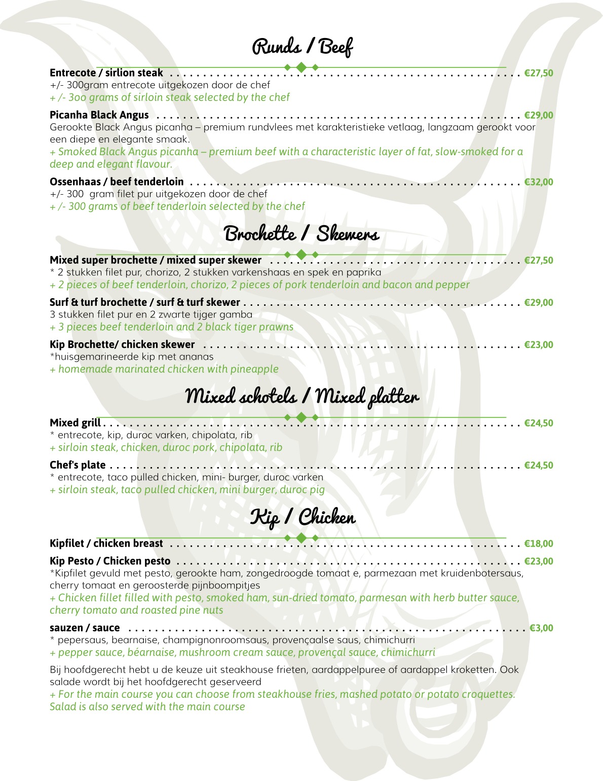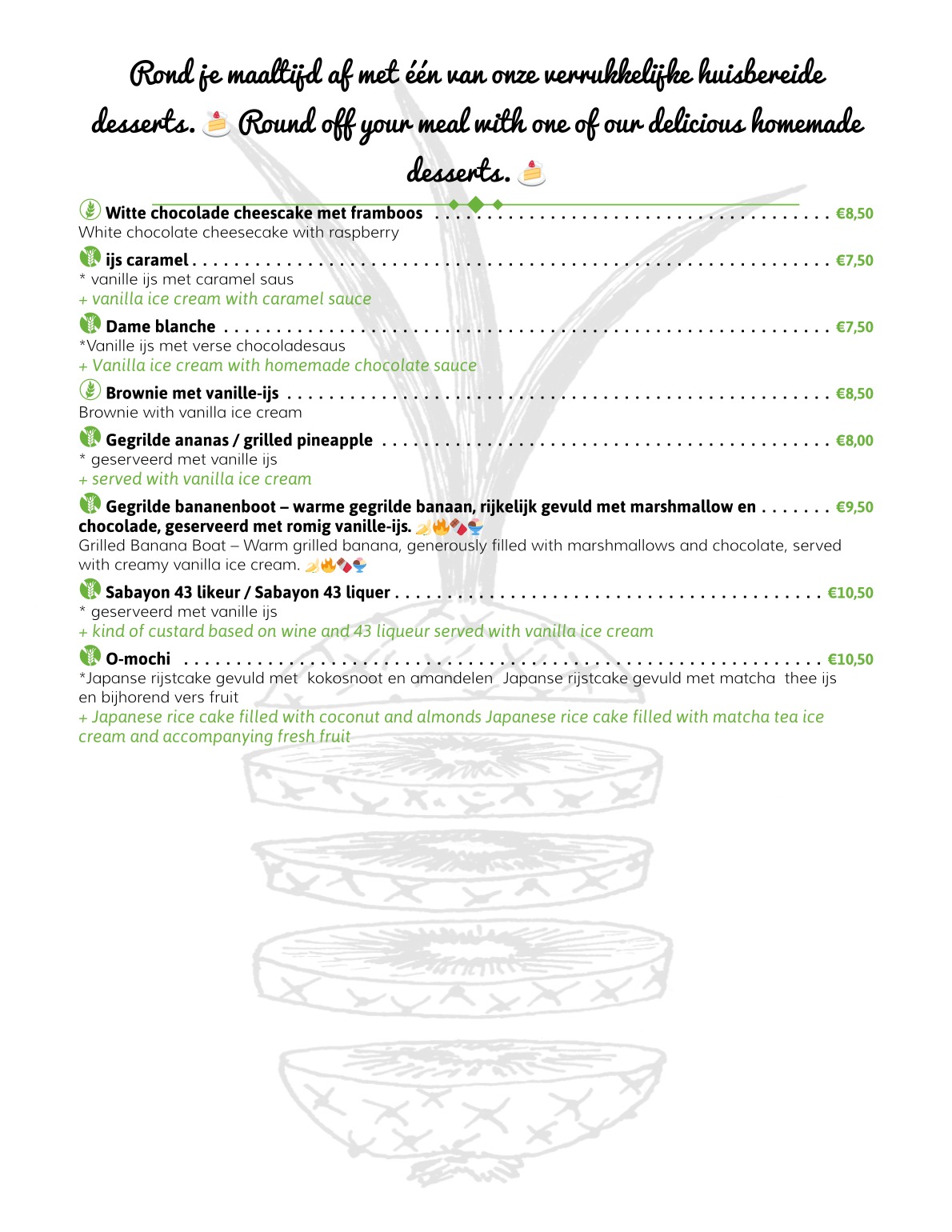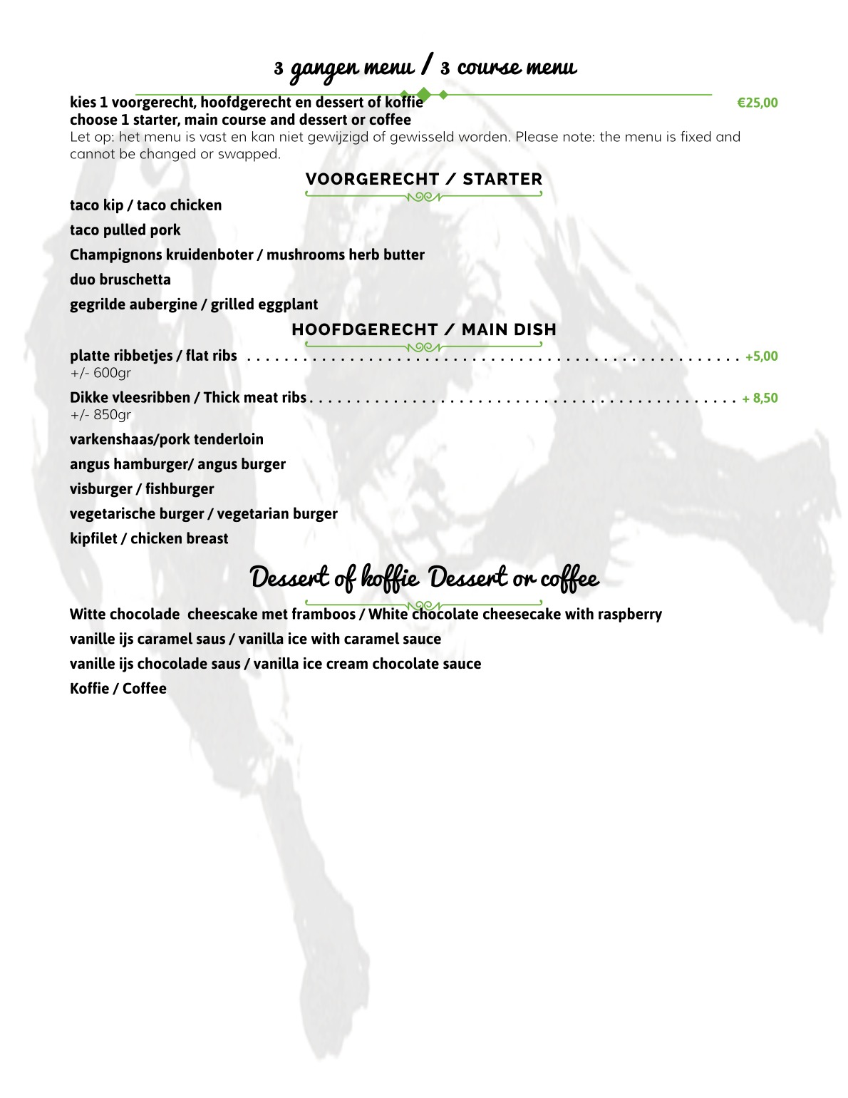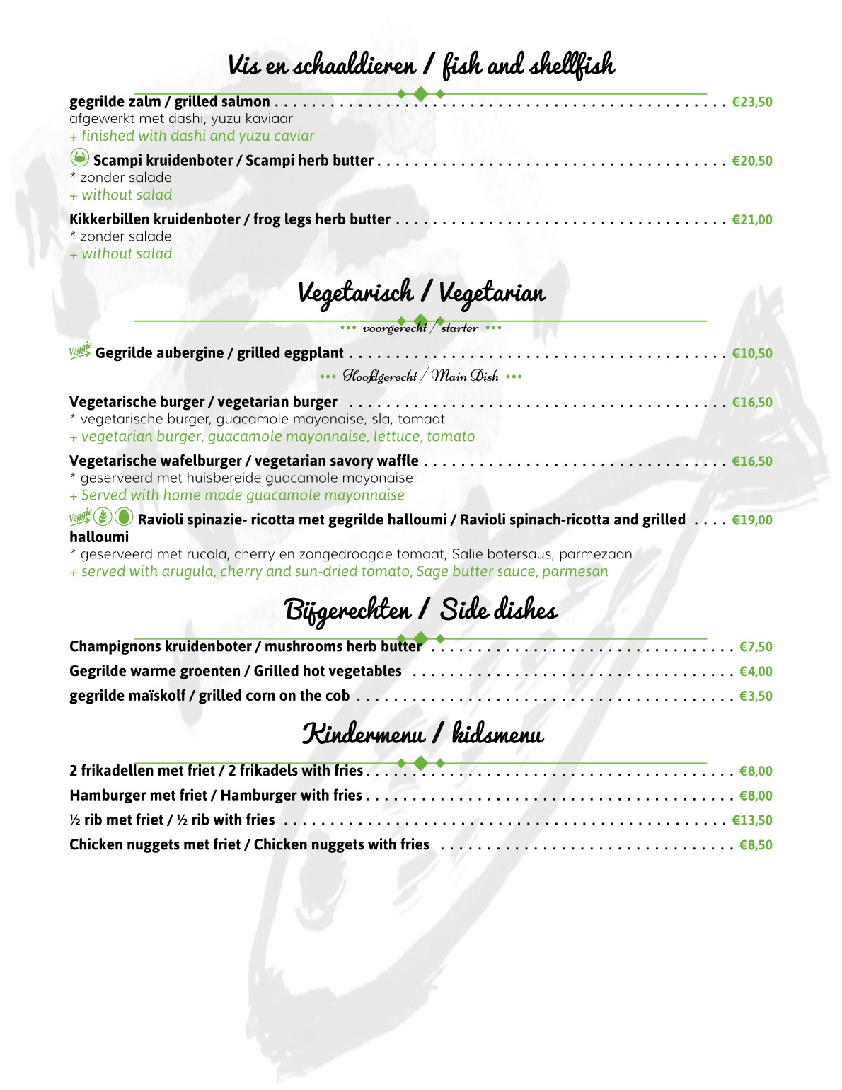 Ons etablissement heeft de volgende faciliteiten: verwarmd terras, buitenservice en gratis wifi. Neem gerust uw huisdieren mee, ook zij zijn hier welkom. U kunt uw rekening betalen met contant geld, contactloos, Mastercard, VISA en pinpas. Neem contact met ons op om uw tafel te reserveren.